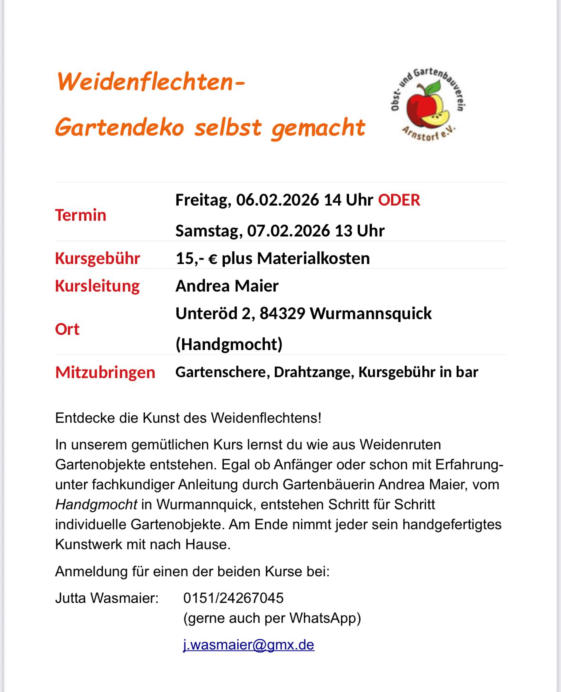Baumpatenschaften im Obstlehrgarten:Viele Mitglieder haben im Obstlehrgarten eine Baumpatenschaft übernommen. Diese hat u.a. folgenden Inhalt:Der Baumpate ist berechtigt eine etwa erforderliche Nachpflanzung auf eigene Kosten vorzunehmen, den Baum zu pflegen, die Früchte für sich zu ernten und zu diesem Zweck den Obstlehrgarten jederzeit zu betreten.Er ist anderseits verpflichtet die Pflege des Baumes und der Baumscheibe zu übernehmen und erforderliche Arbeiten für den Obstlehrgarten schonend vorzunehmen. Etwaige Spritzmittel können nur in Absprache mit dem Verein verwendet werden.In den letzten Jahren hat der Verein kostenlos überwiegend die Arbeiten für die Bäume gemacht. Dies ist aber nicht der Sinn einer Baumpatenschaft. Wir bitten die Baumpaten daher künftig die vorgenannte Pflege selbst zu übernehmen. Gemeinschaftliche Termine werden wir künftig über die Presse und über die Homepage bekanntgeben. Die Arbeiten können jedoch auch jederzeit außerhalb der Gemeinschaftstermine vorgenommen werden. Für einen kleinen jährlichen Beitrag von 10,00 € übernimmt der Verein diese Arbeiten. Wir bitten die Baumpaten der Vorstandschaft mitzuteilen, wie sie vorgehen wollen. Die Paten-schaften können auch jederzeit zurückgegeben werden.Wer von unseren Mitgliedern Interesse an einer Baumpatenschaft hat, kann jederzeit eine solche übernehmen. Bitte melden Sie sich beim Vorstand.