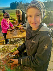 Die Oachkatzlbande war am 4. Sep-tember 2025 auf dem Waldlehrpfad mit der Försterin unterwegs.