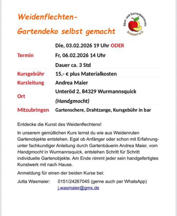 erforderliche Arbeiten für den Obstlehrgarten schonend vorzunehmen. Etwaige Spritzmittel